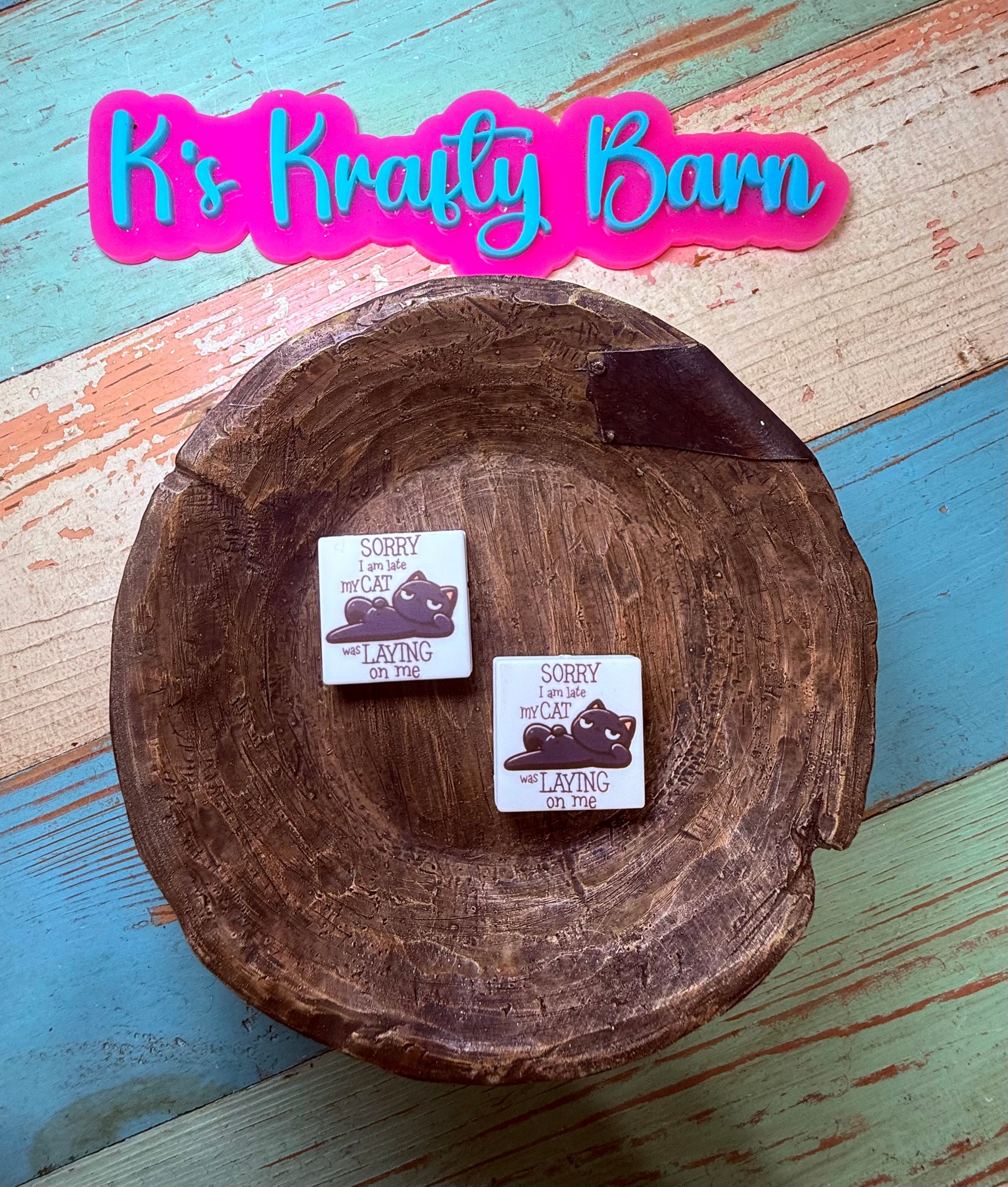 Wholesale Silicone Focal Bead- Sorry I'm late my cat was laying on me