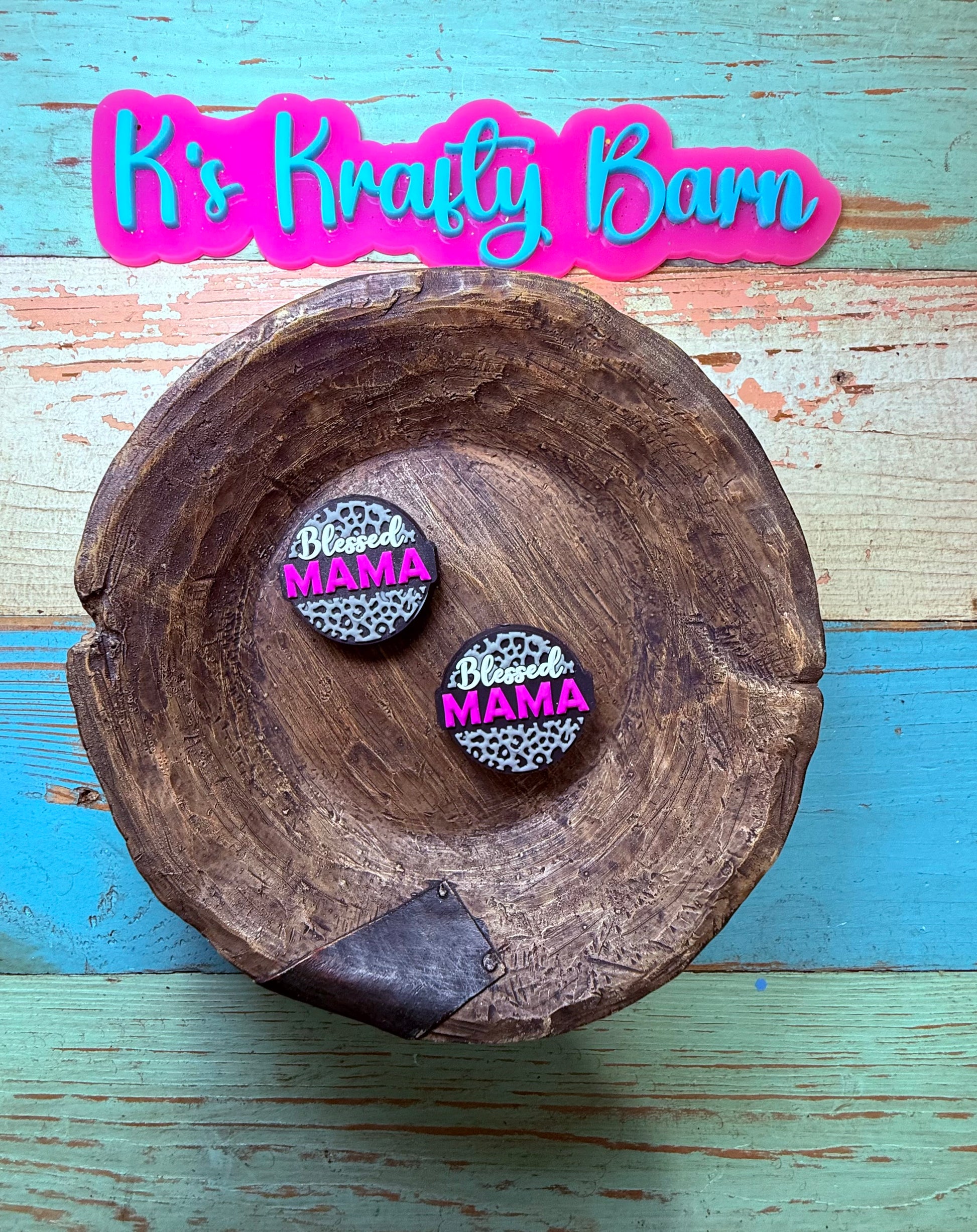Wholesale Silicone Focal Bead- Pink Blessed Mama Leopard print